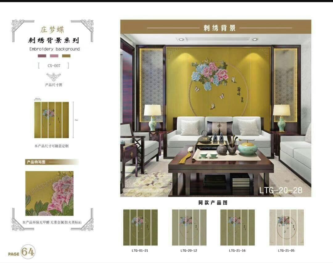本厂是一家集高端软、硬包背景墙、3D/8D 无缝壁画、无缝壁布等设计生产加工销售 为一体的一站式综合型背景墙制作厂家, 主营传统软包硬包、皮革艺术喷绘软包硬 包、高挡玻璃刺绣硬包,皮革绣花硬包,整幅刺绣硬包、真丝超手绘硬包。仿真丝皮革整幅刺绣硬包,装饰皮革,竹节真丝布热转印硬包,艺术手绘,皮革喷绘艺术软硬包,浮雕艺术软包,无缝壁布,无缝壁画。