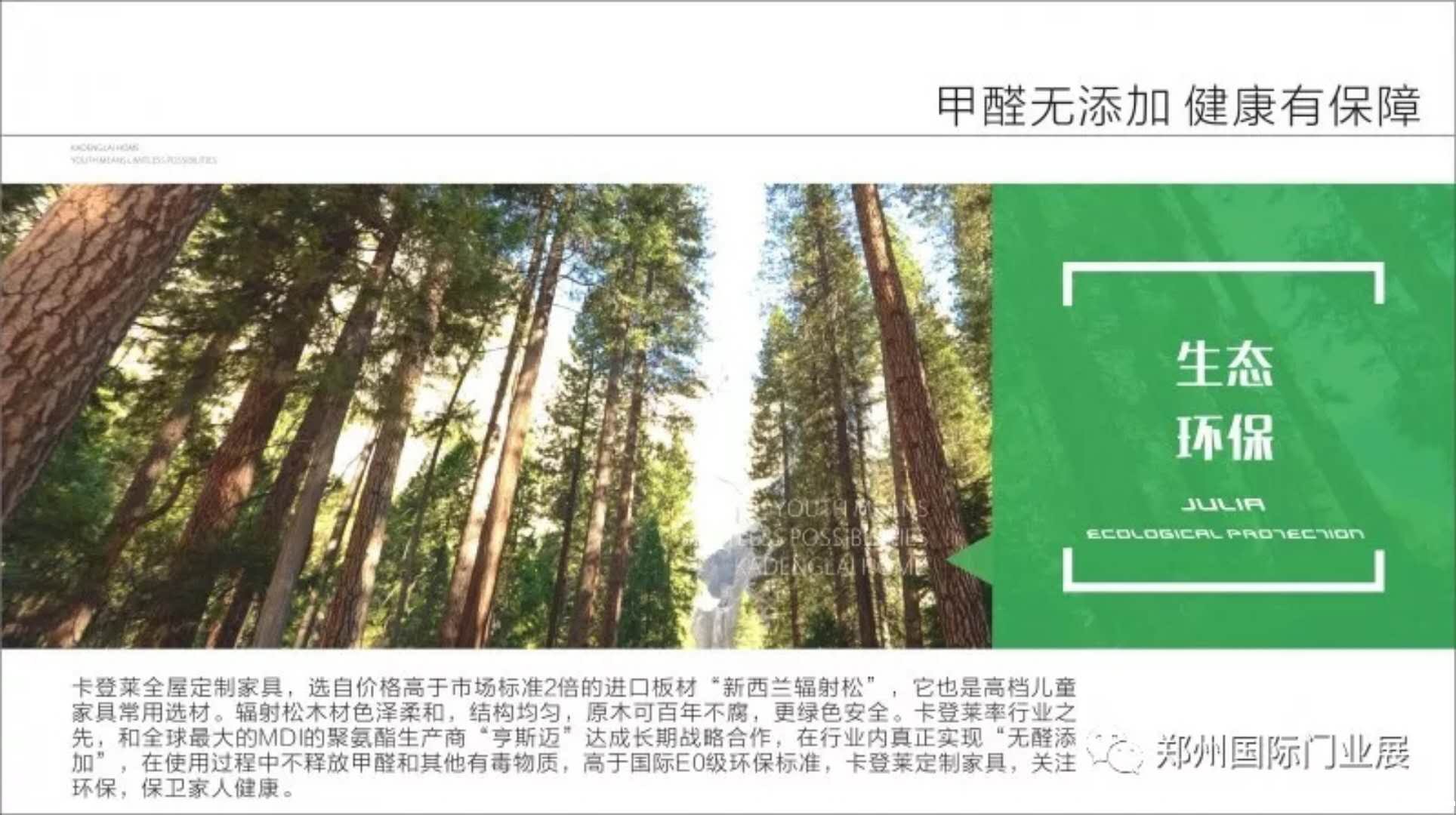 卡登莱全屋定制在强调时尚调性的同时与年轻派的追求不谋而合,本着给生活多点美好的理念,提供强大的品质支撑,以功能自由为主导,多面生活,引领大众体验与众不同的家居生活体验,在人们更加注重生活品质的同时,卡登莱更加注重生态环保。