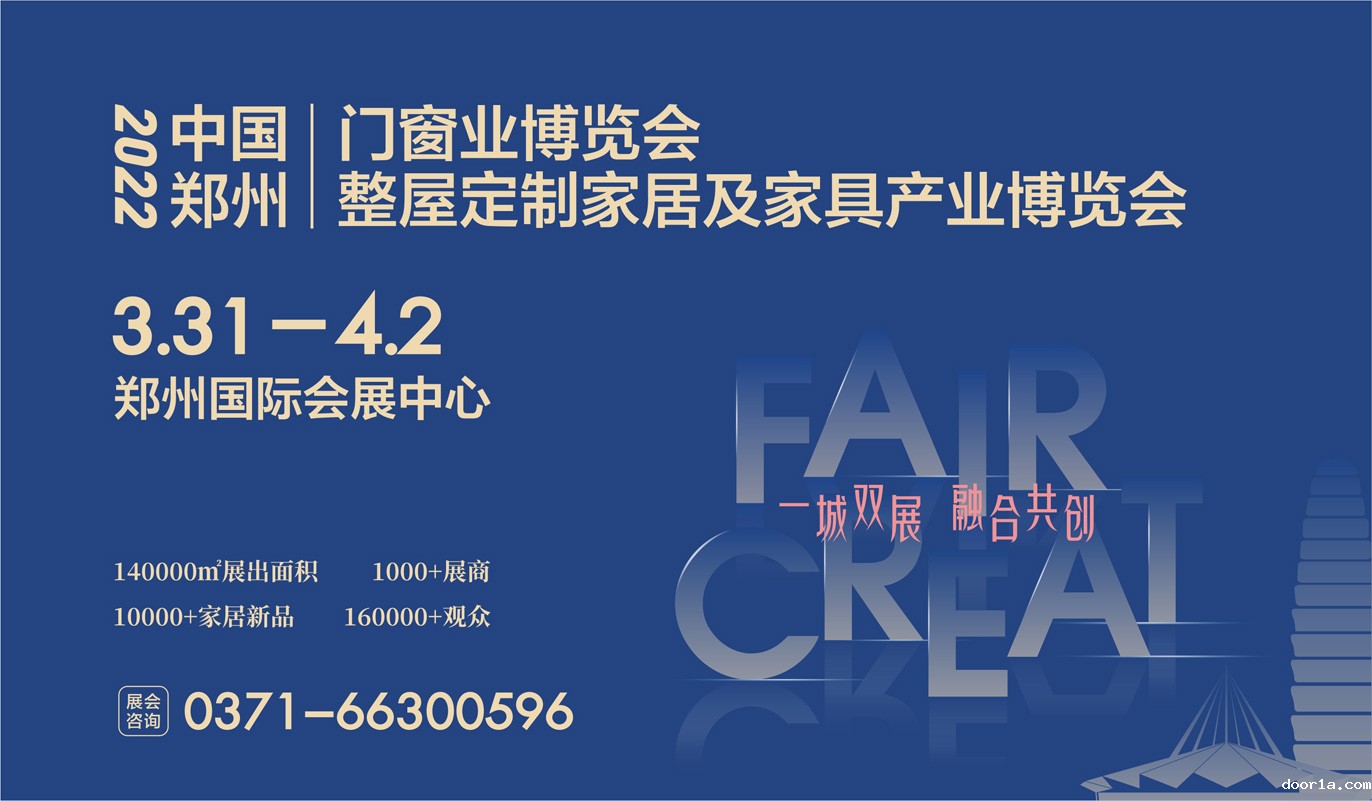 “一城双展,融合共创”,2022年3月31日--4月2日,2022中国郑州门窗业博览会、2022中国郑州整屋定制家居及家具产业博览会将在郑州国际会展中心,同期盛大举行!