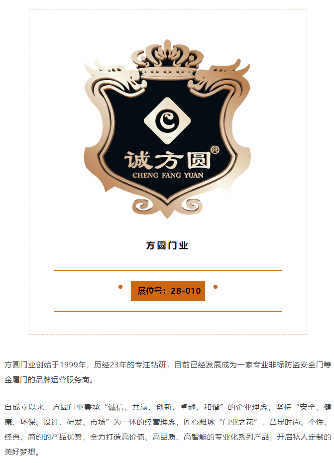 展商推荐 | 方圆门业:以品为先、以质取胜!开启家用防盗门新生活