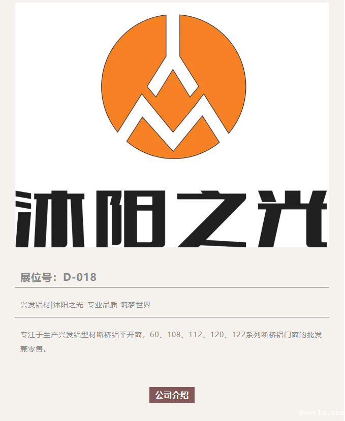 展商推荐 | 兴发铝材 | 沐阳之光:集开发设计、生产、安装、服务为一体的门窗行业公司