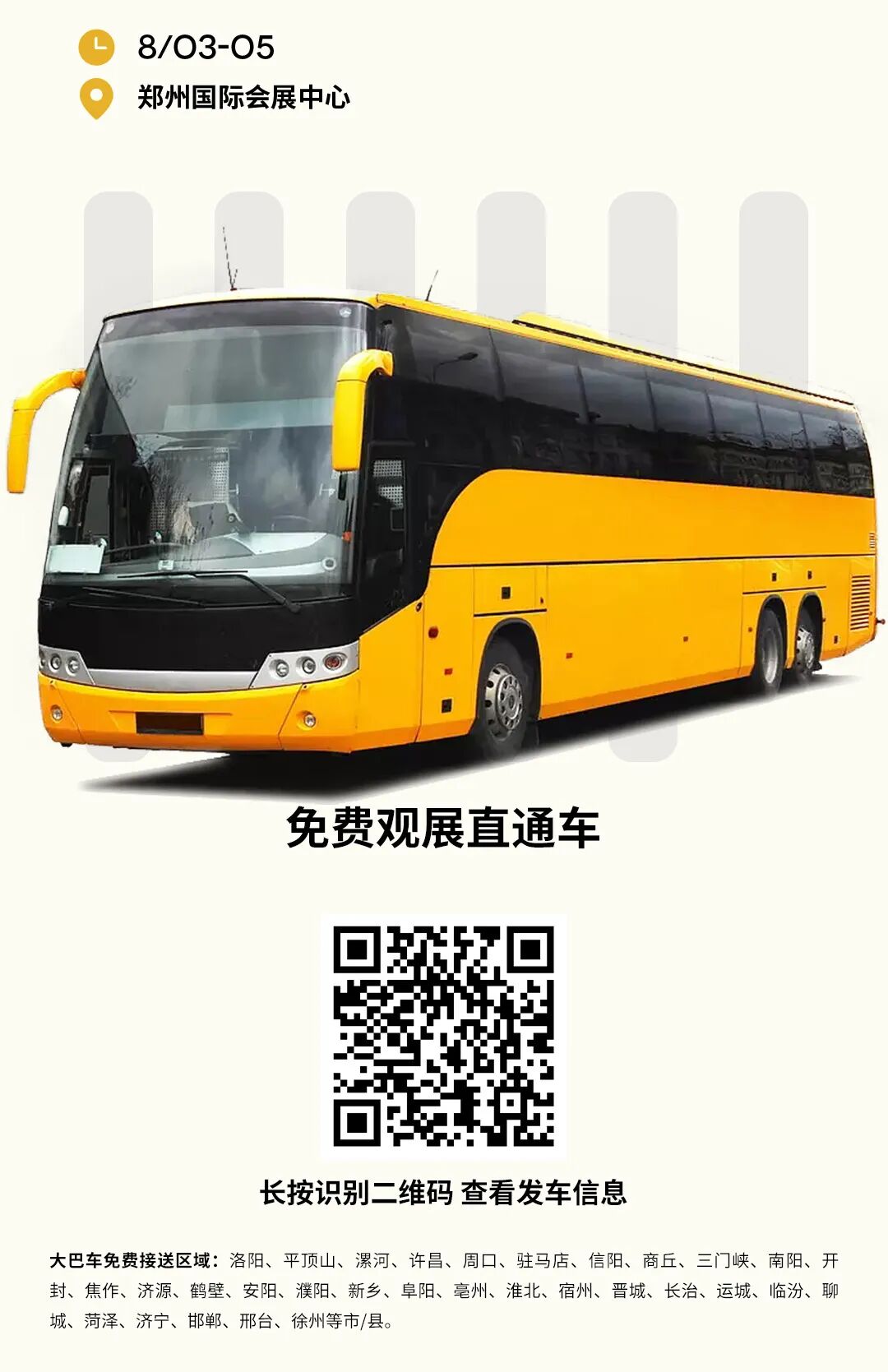 展会期间,组委会贴心安排免费大巴接送观众,您可提前预约,合理安排乘坐时间。