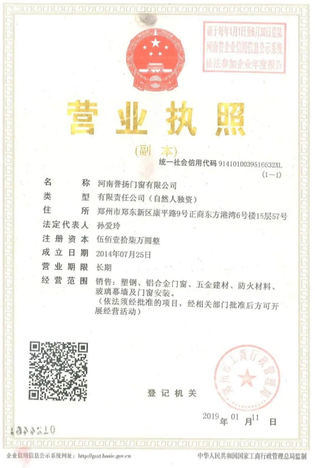 河南誉扬门窗有限公司