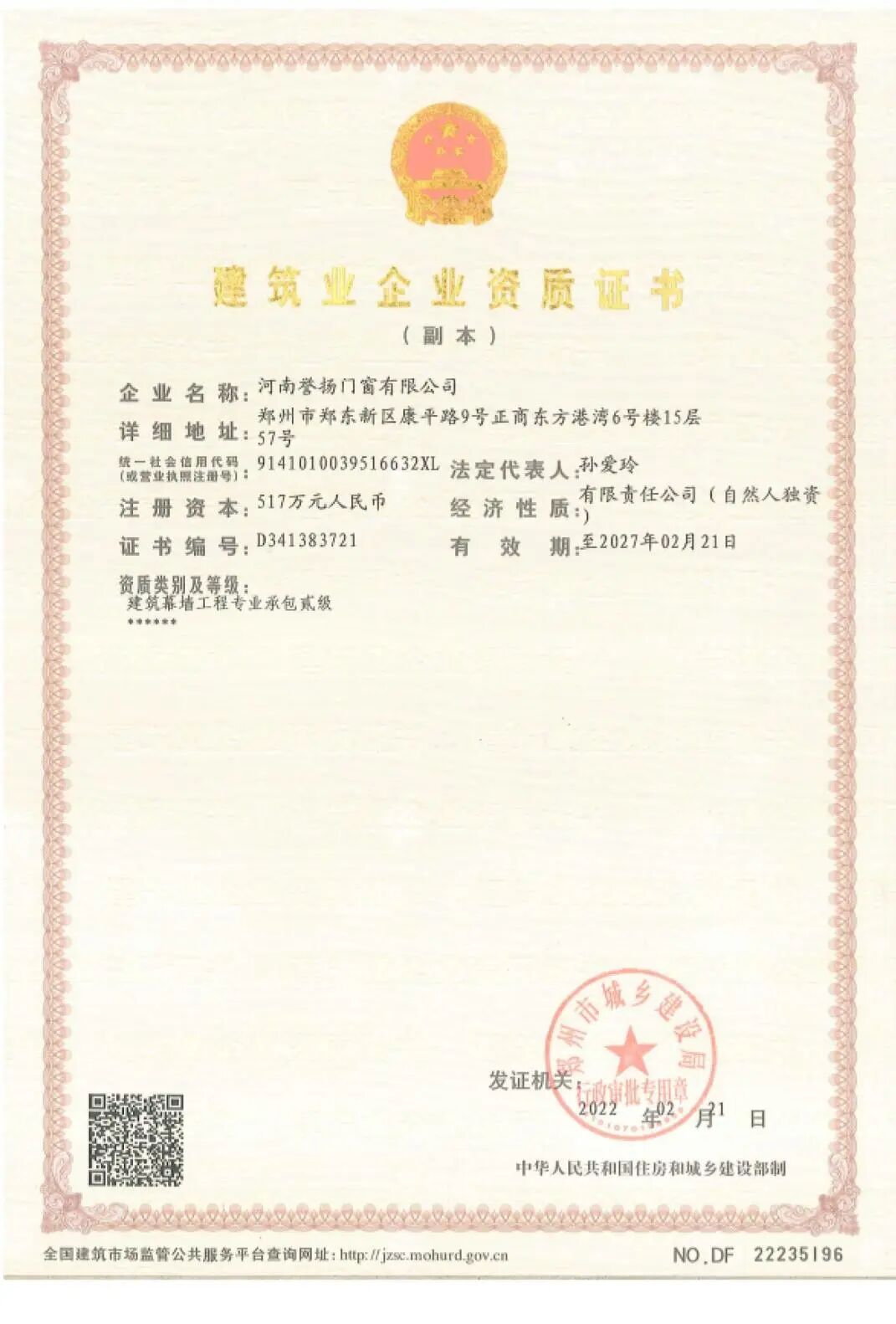 公司经营范围有:装建筑幕墙工程设计与施工、门窗天窗工程、钢建筑工程设计与施工。