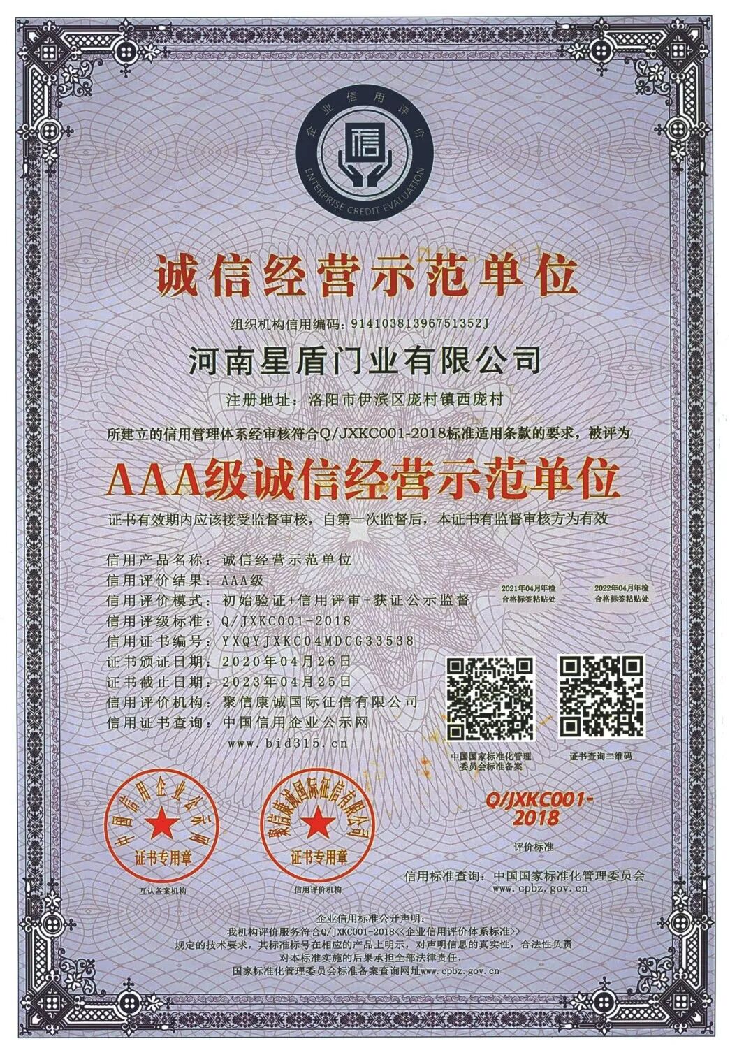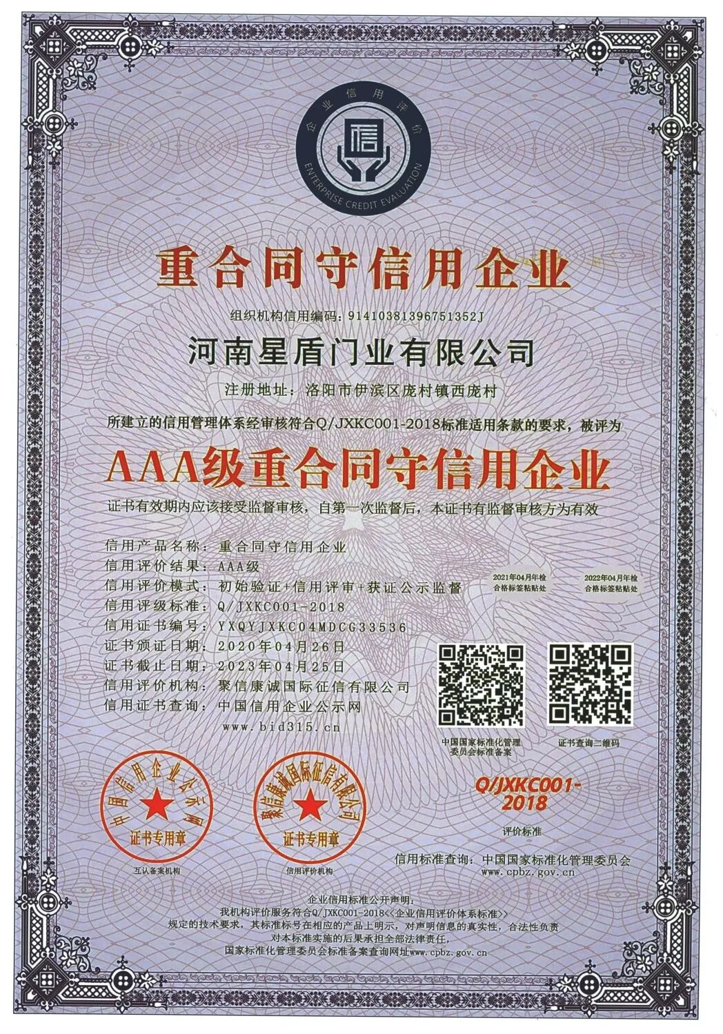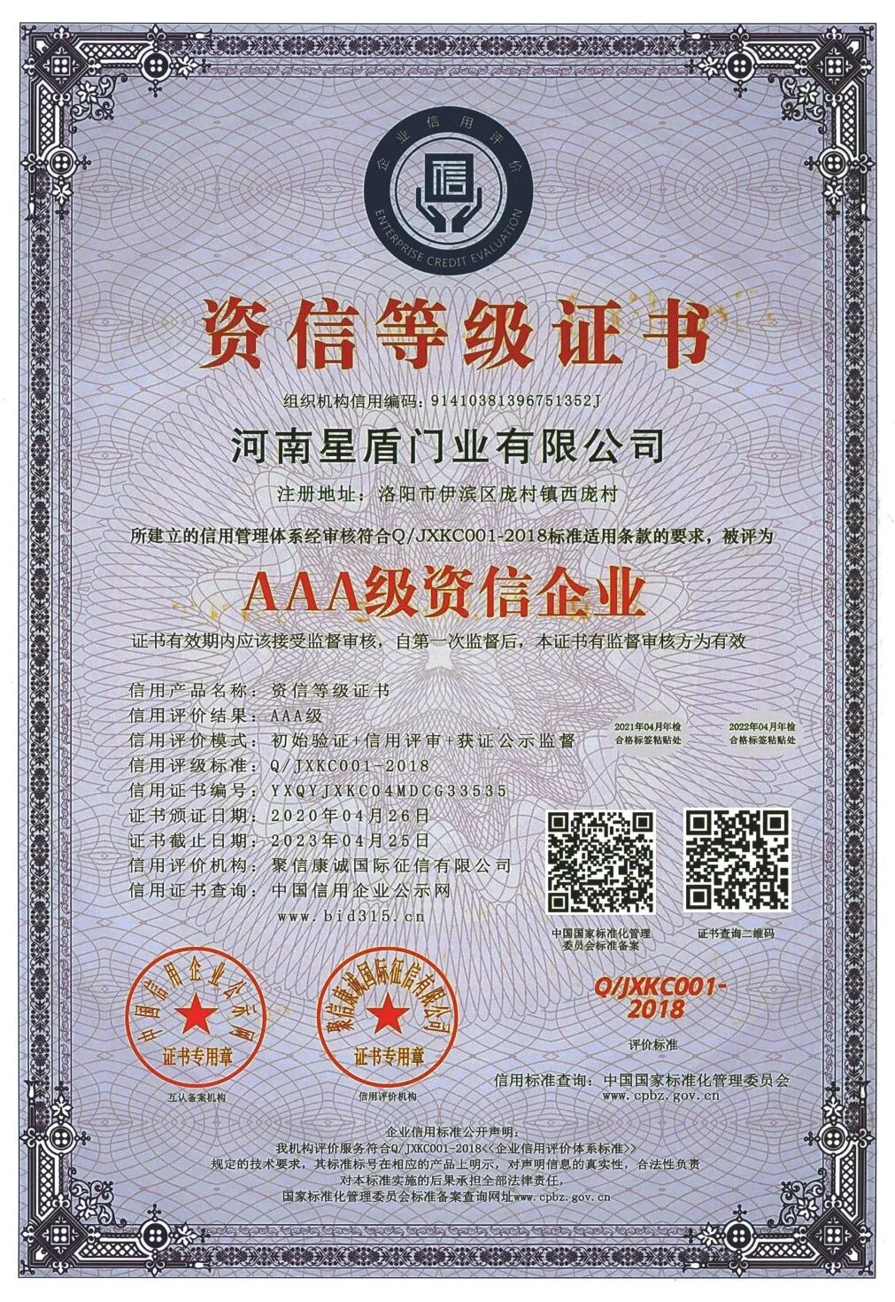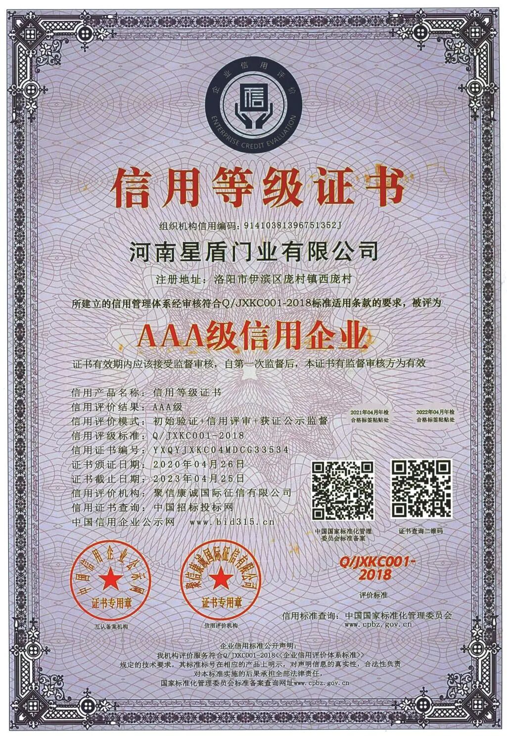 河南星盾门业有限公司在2003年已通过公安部消防产品合格评定中心认证,十多年来一直从事防火门产品的生产和研发,现已通过ISO 9001:2015质量管理体系认证、 ISO14001:2015环境管理体系认证和GB/T45001-2020/ISO 45001:2018职业健康安全管理体系认证。