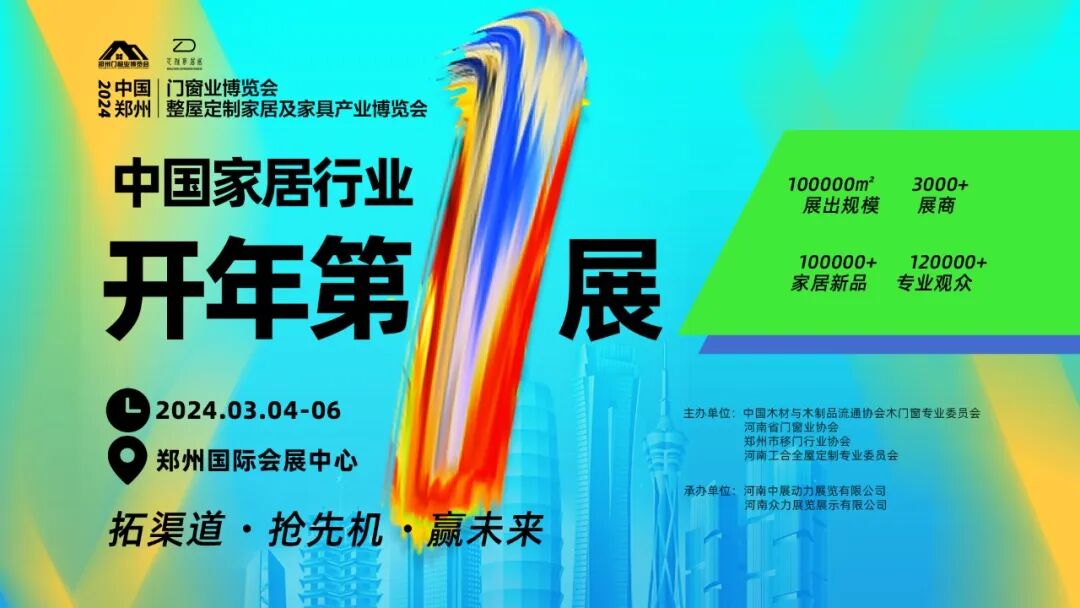 2024年3月4日-6日,“2024中国郑州门窗业博览会”与“2024中国郑州整屋定制家居及家具产业博览会”将在郑州国际会展中心同期盛大举行。