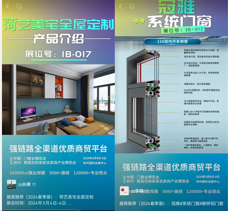 2024郑州门窗业暨整屋定制家居展黄金广告位招商现全面开启!展馆现场广告强势宣传,展会物料精准分发,网络媒体平台集中推广,我们为您提供看得见的流量曝光,助力品牌推广,让市场触手可及!