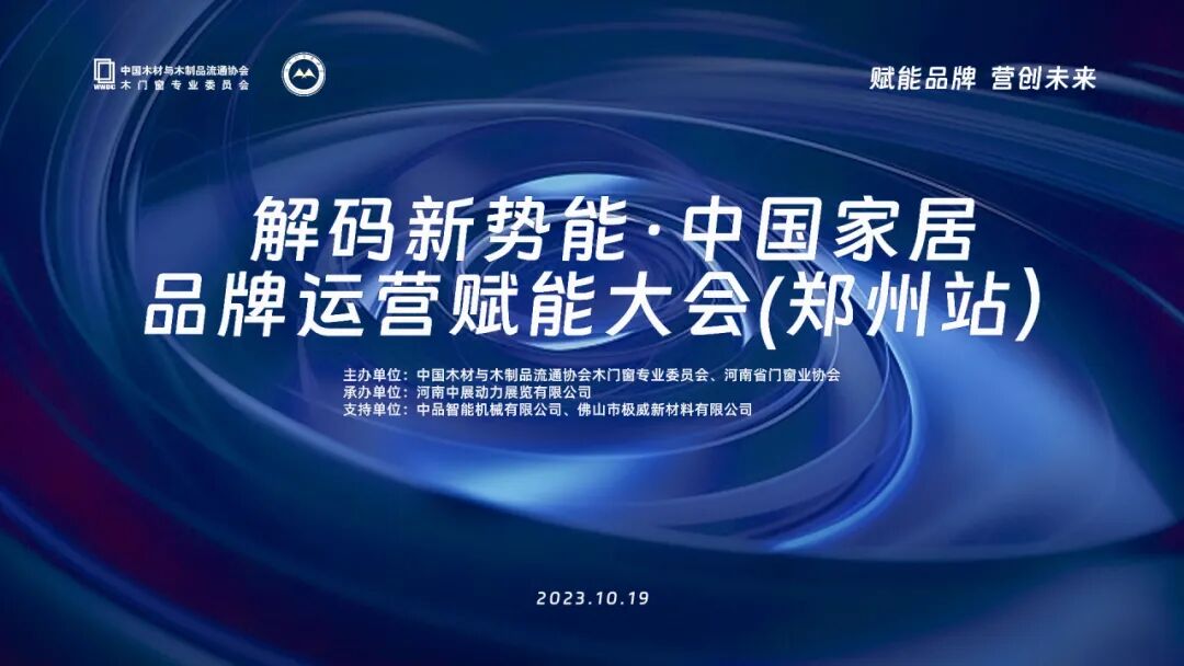 2023年10月19日,由中国木材与木制品流通协会木门窗专业委员会、河南省门窗业协会主办,河南中展动力展览有限公司承办的解码新势能·中国家居品牌运营赋能大会(郑州站)在郑州天鹅城国际饭店圆满召开!本次活动得到了中品智能机械有限公司、佛山极威新材料有限公司、商都网的大力支持。
