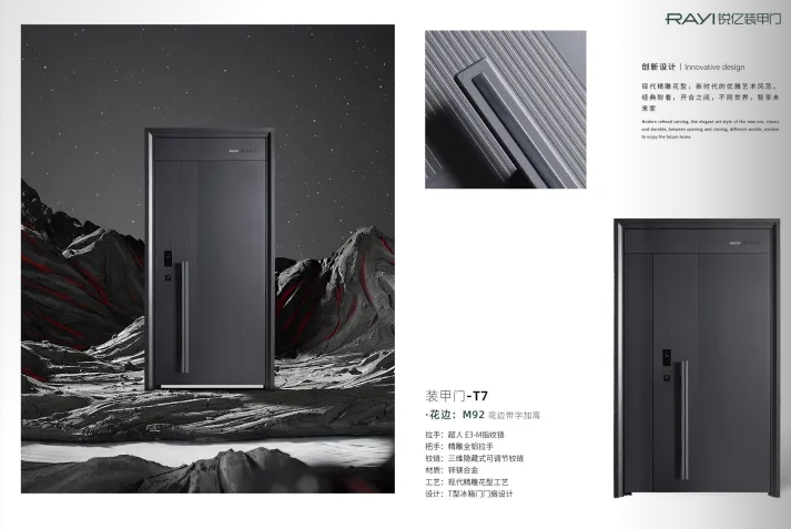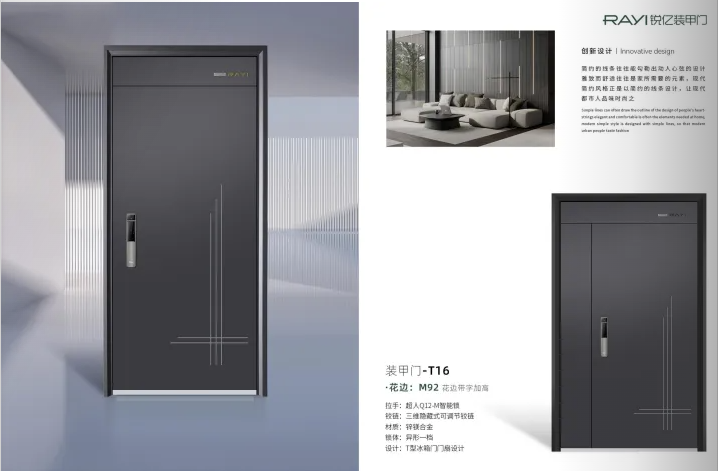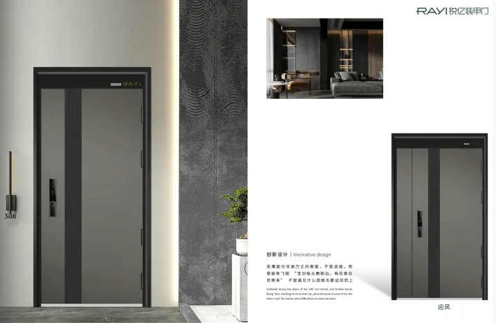浙江锐亿智能科技股份有限公司坐落于“中国门都享”之称的永武缙工业带,是武义当地代表型龙头企业。厂区占地面积10多万平方米,主营静音全自动安全门、德式拼接门、防盗门、防火门、实木复合门、钢木装甲门、意式装甲门系统、智能家居安防系统、智能锁具系统(虹膜系统、 指纹系统、面部识别系统等)等系列产品,现有员工1000多人,专业技术工程师50余人,拥有四条国内的全自动环保型生产流水线,年产能超150万樘。