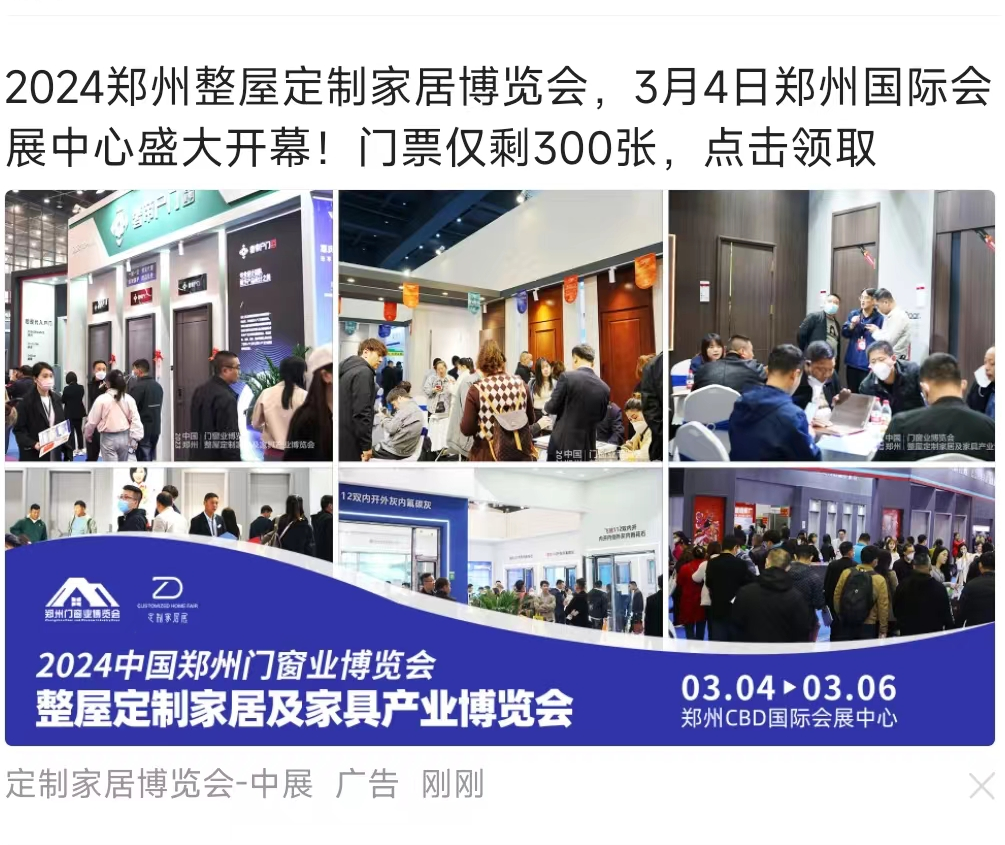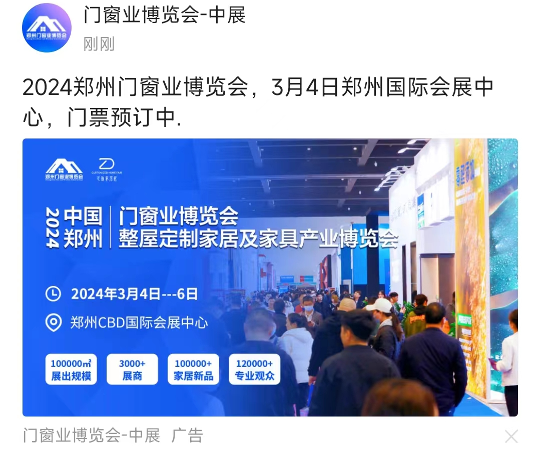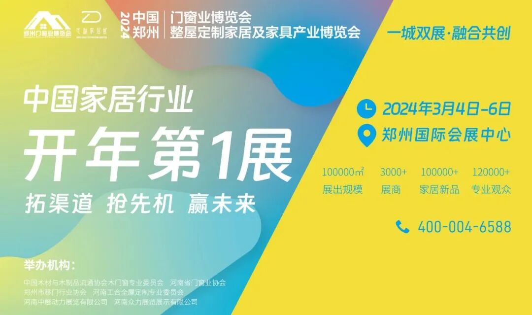 2024年3月4日-6日,2024中国郑州门窗业暨整屋定制家居及家具产业博览会将在郑州国际会展中心盛大举行。100000㎡展览规模,7大主题展区,3000家展商齐聚,为产业链上下游品牌提供集交流对话、新品展示、招商加盟等高效合作平台,打造全国大家居行业开年大展!