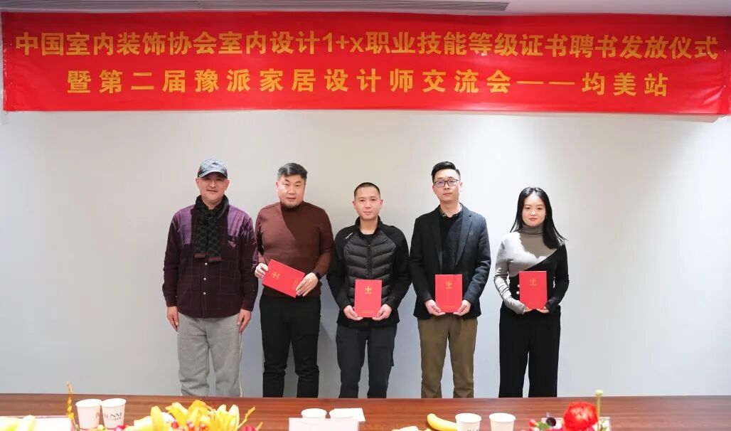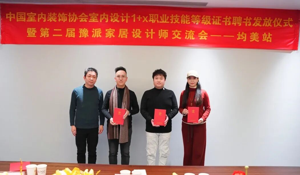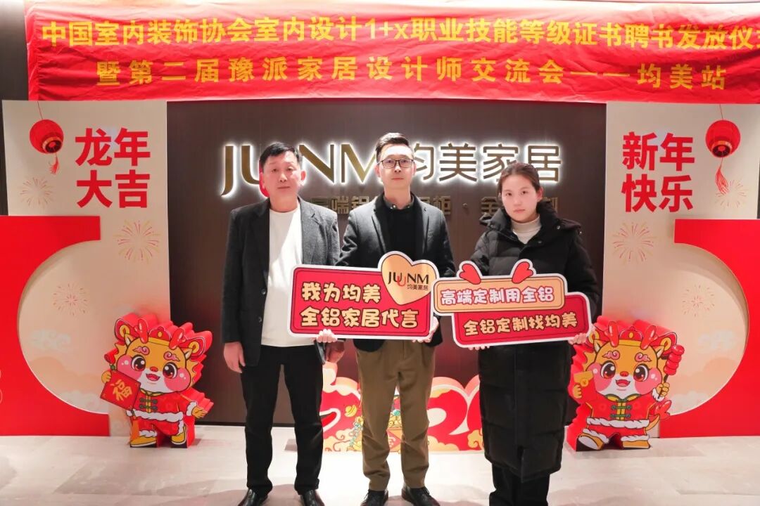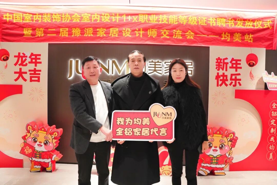 2024年1月18日,由中国室内装饰协会(河南)、河南省门窗业协会主办,河南均美全铝家居定制承办的“中国室内装饰协会室内设计1+X职业技能等级证书聘书发放仪式暨第二届豫派家居设计师交流会”,在均美全铝定制家居郑州展厅成功召开。