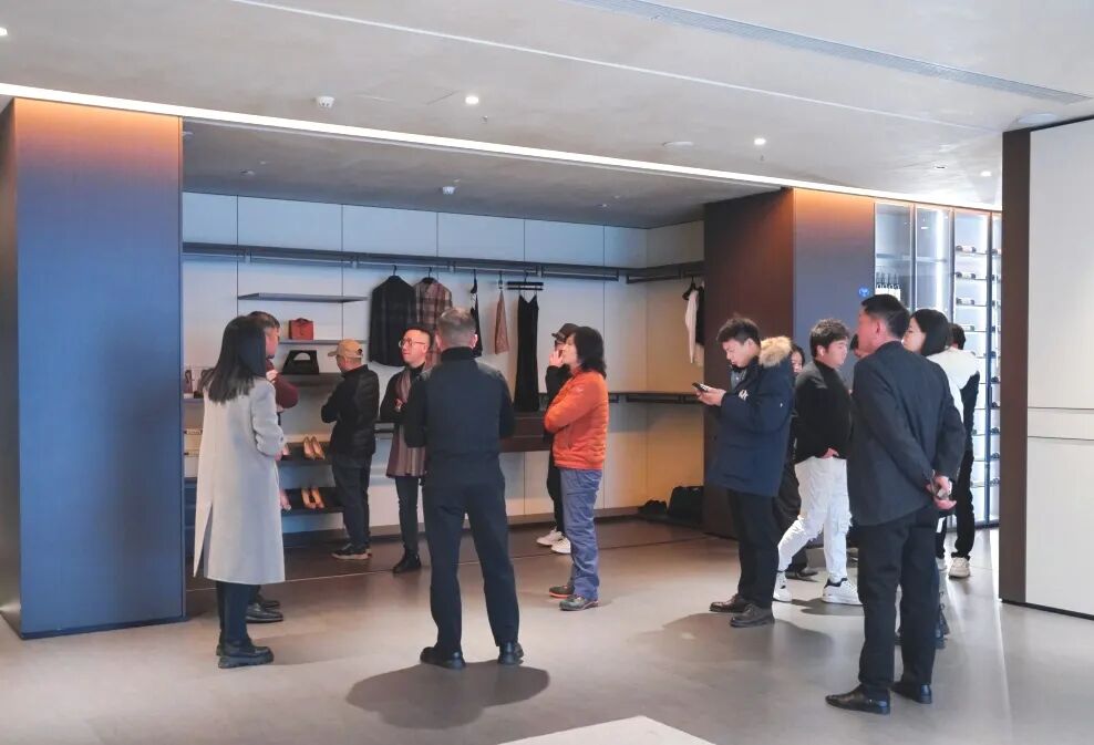 随后,与会嘉宾一行观看均美品牌宣传片,走进实景展厅进行参观。他们驻足欣赏展区产品细节,仔细听取品牌详细介绍,并与均美负责人深入交流探讨,详细了解生产工艺、产品优势、品牌销售等情况。