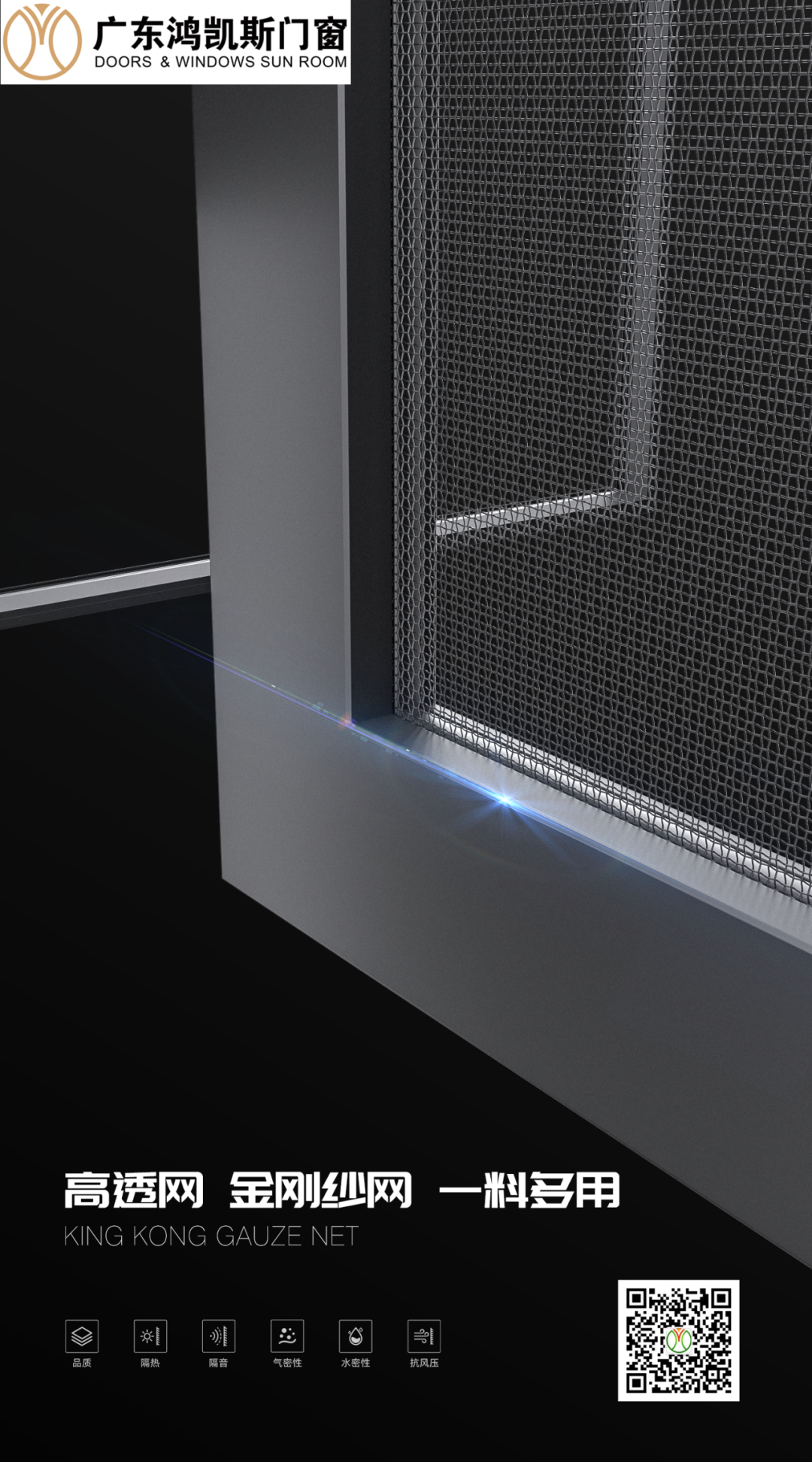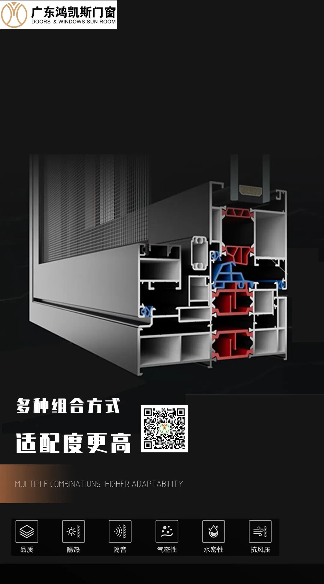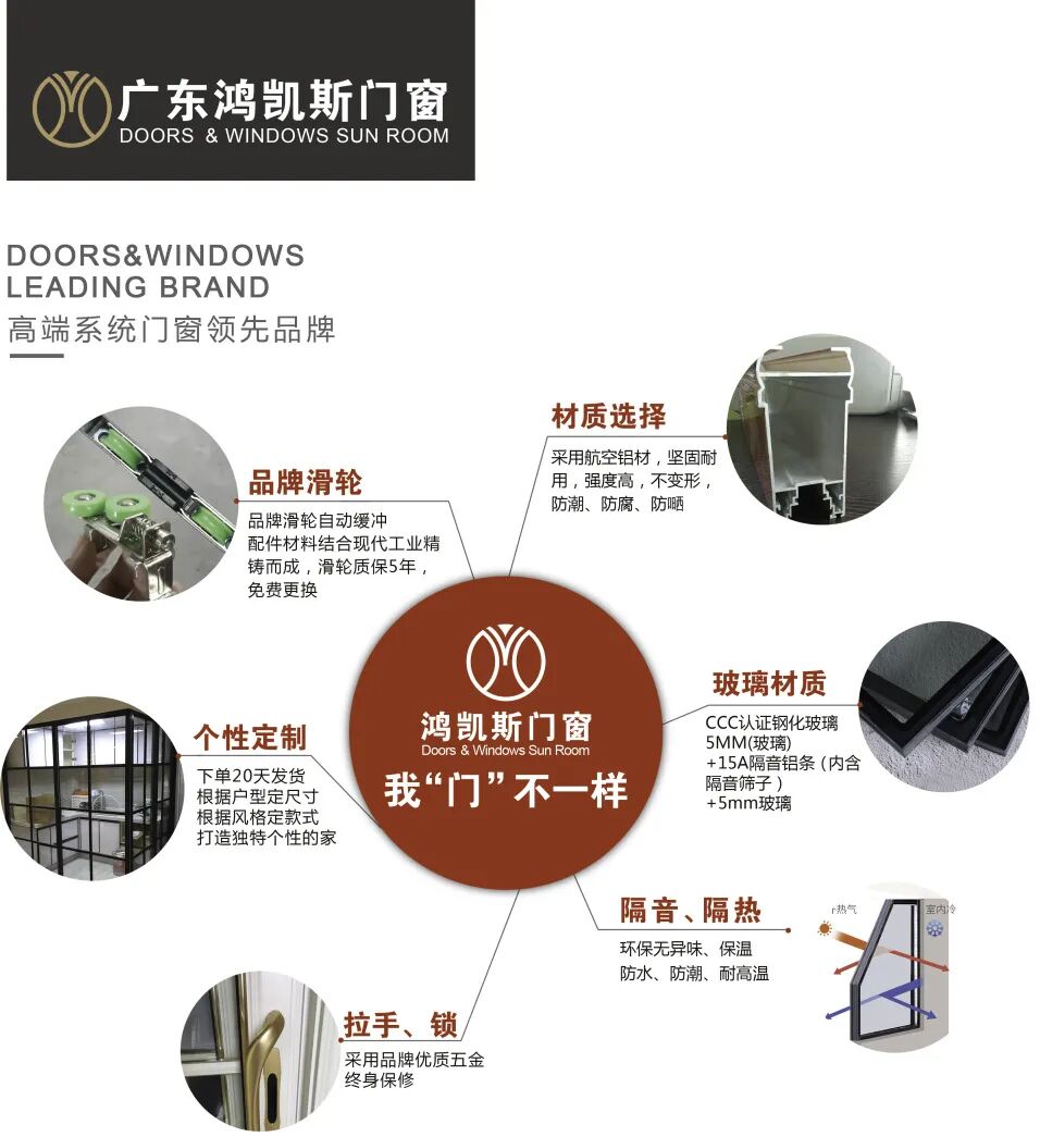 鸿凯斯产品采用国际先进的喷涂技术及全套德国进口设备,产品种类包含钛镁铝合金平开门、吊趟门、推拉门、重型推拉门、断桥推拉、平开窗、木铝复合窗、阳光房等系列。