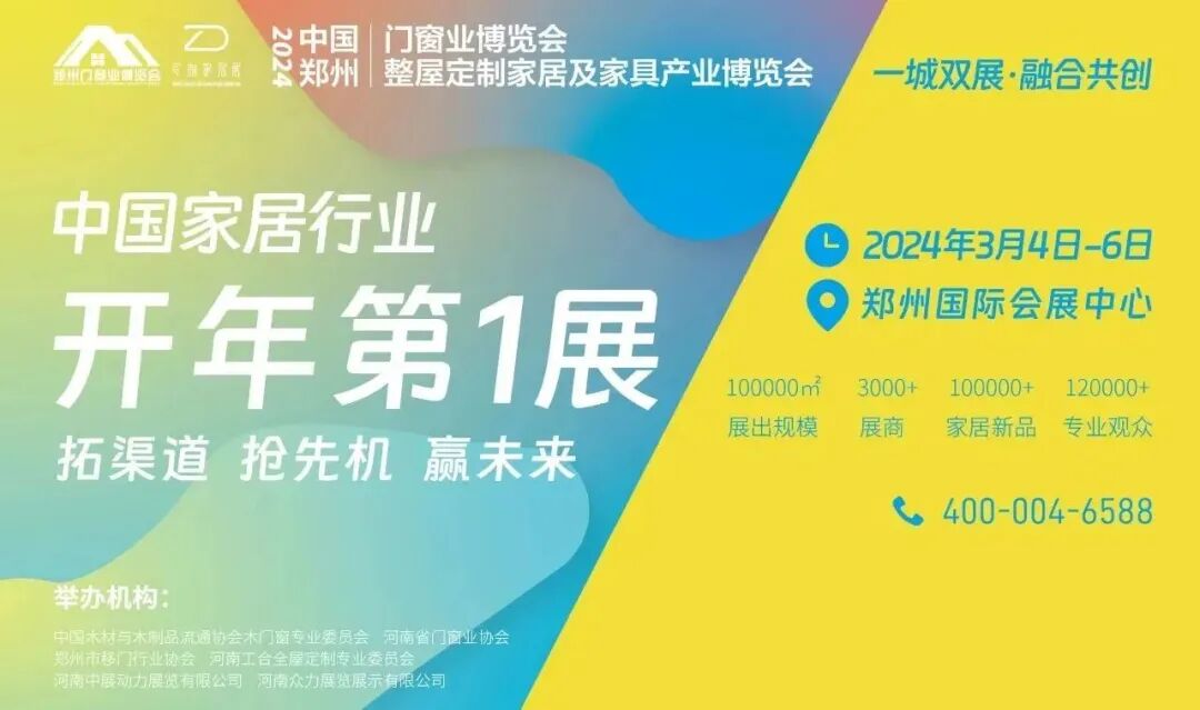 2024年3月4日-6日,2024中国郑州门窗业暨整屋定制家居及家具产业博览会将在郑州国际会展中心盛大举行。100000㎡展览规模,7大主题展区,3000家展商齐聚,为产业链上下游品牌提供集交流对话、新品展示、招商加盟等高效合作平台,打造全国大家居行业开年大展!