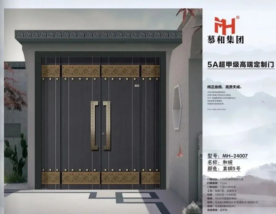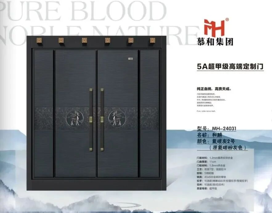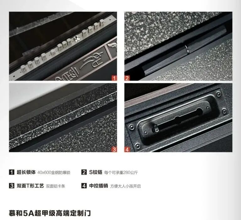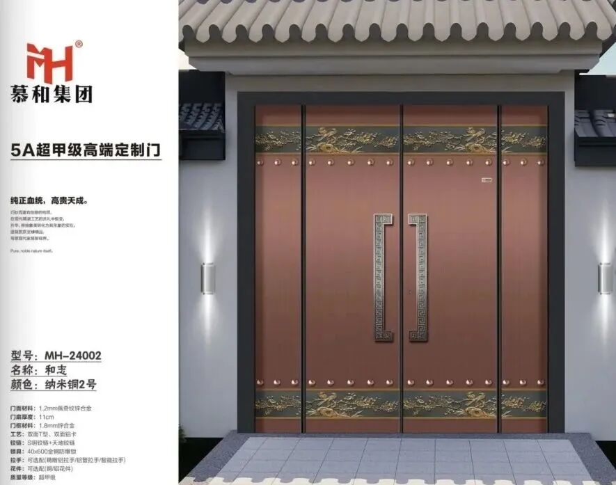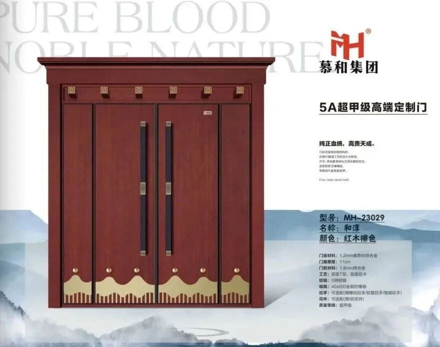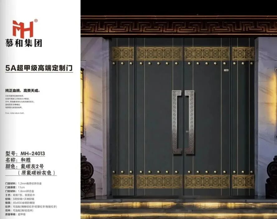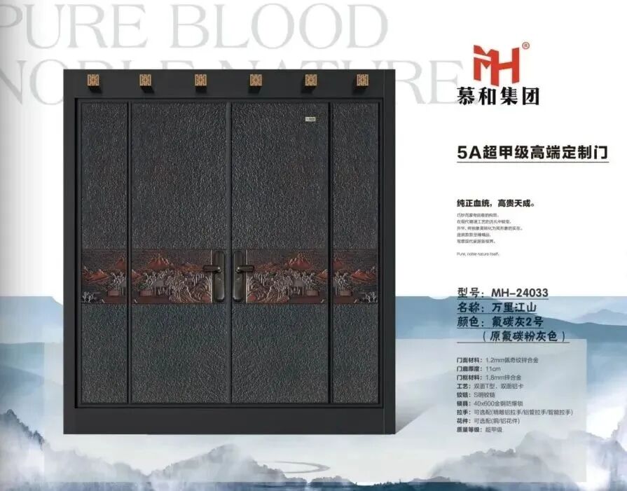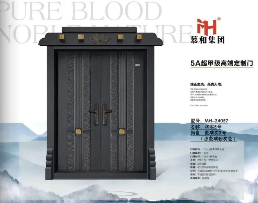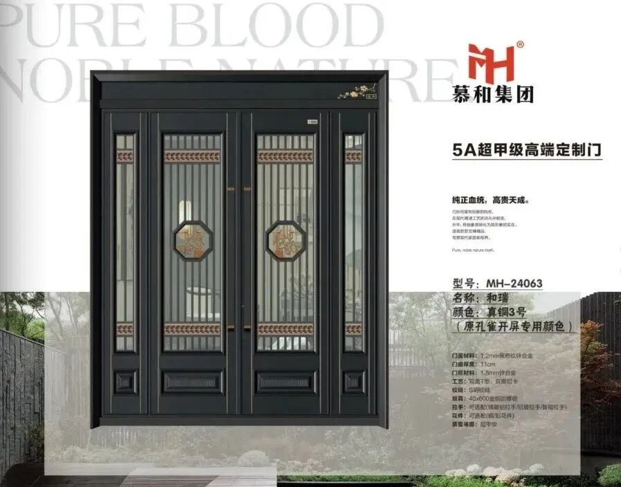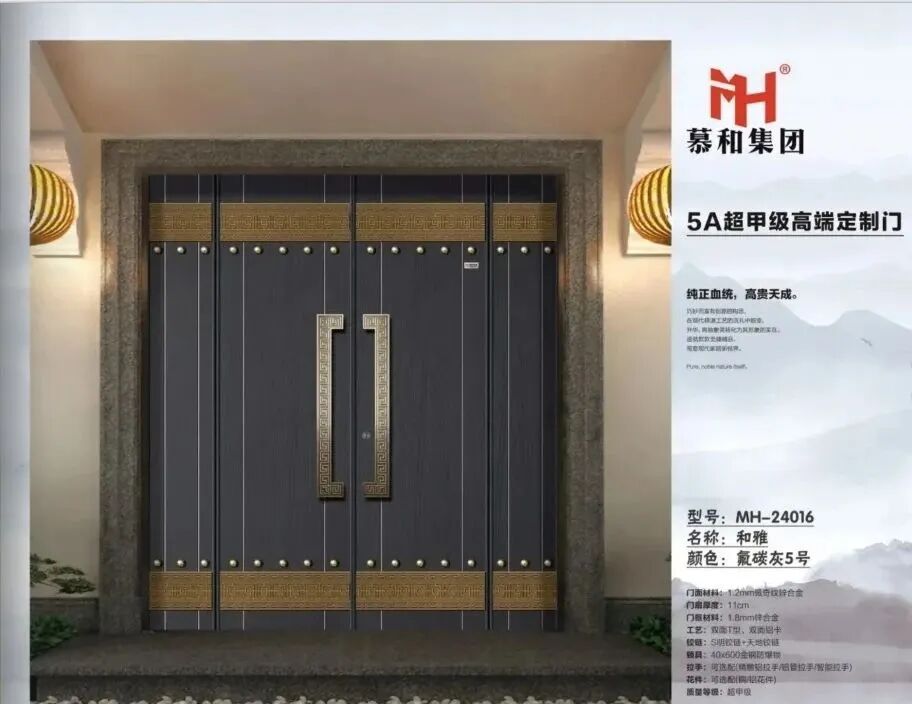 慕和集团研发出来的是全国独一无二新型产品:全新的双面四维铝卡工艺、外观效果美观、开关顺滑轻松、把门扇防下垂做到了极致的效果、全系采用稳定新极强的水性油漆(油漆饱满、质感更强、更有光泽度、防晒、防腐蚀、抗氧化、环保)。部分产品的油漆表面连脱漆剂和硫酸都对其没有腐蚀作用。