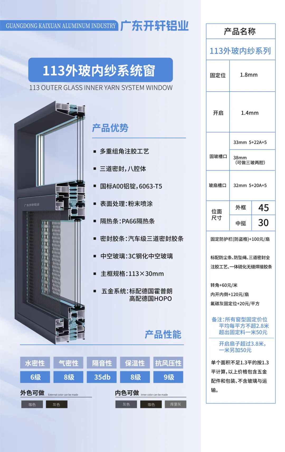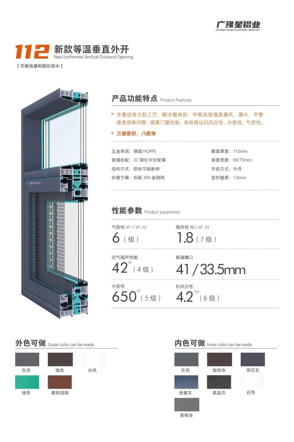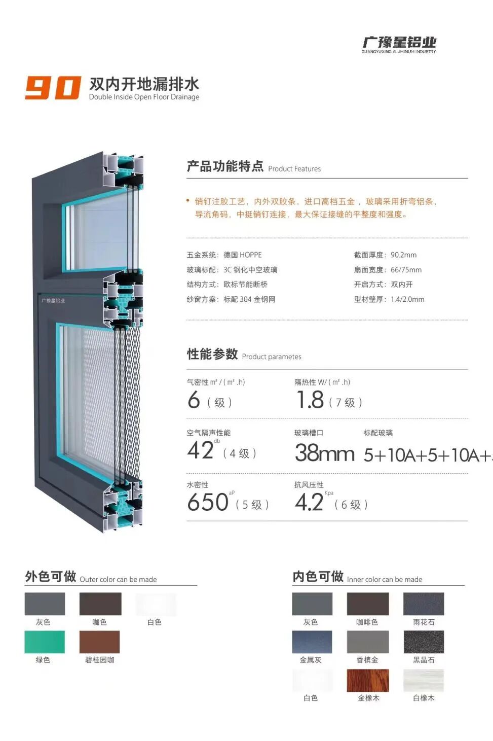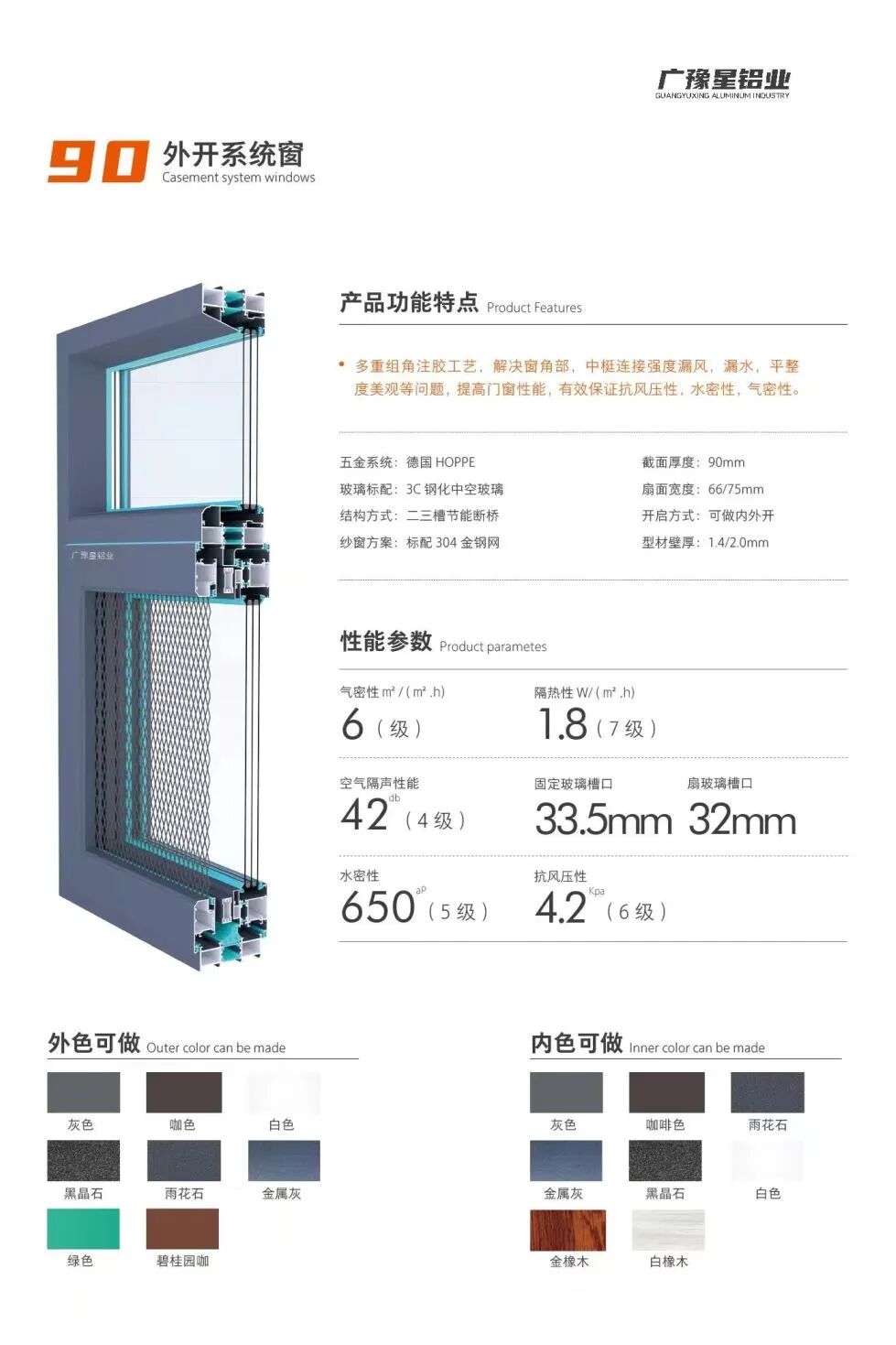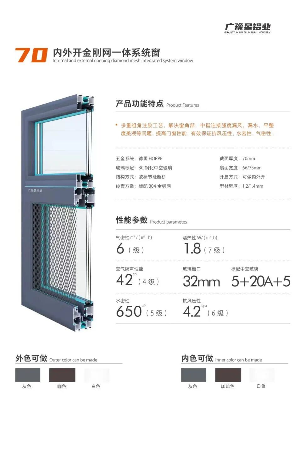 广豫星是一家专注于门窗加工制造的铝业公司。公司主要生产内外开金刚网一体系统窗、内开内外平齐门窗、外开系统窗等产品。