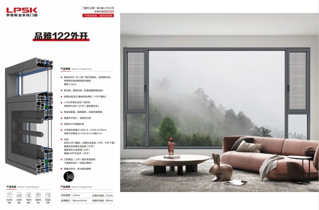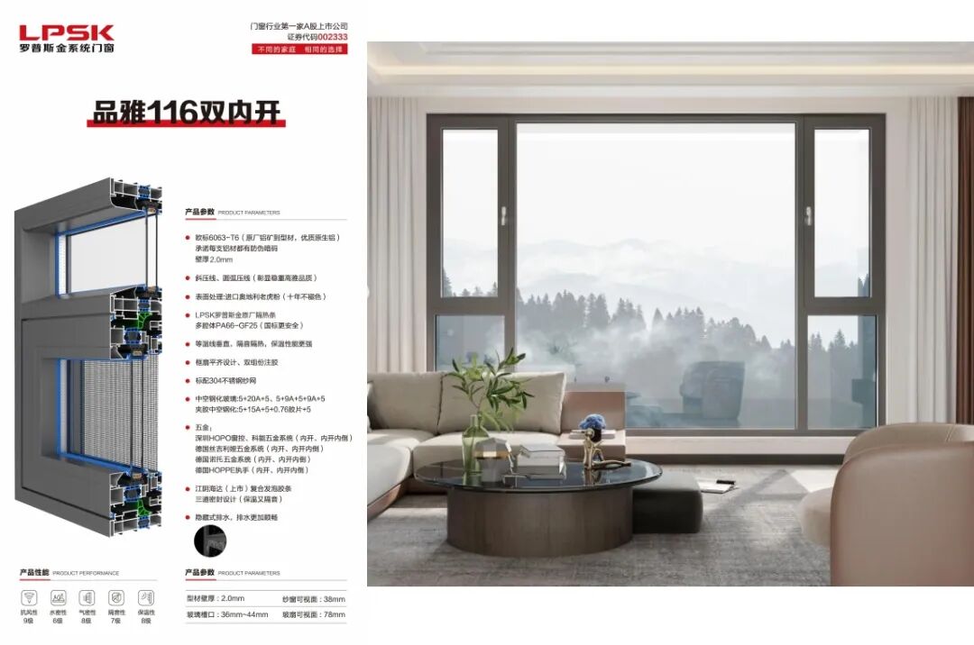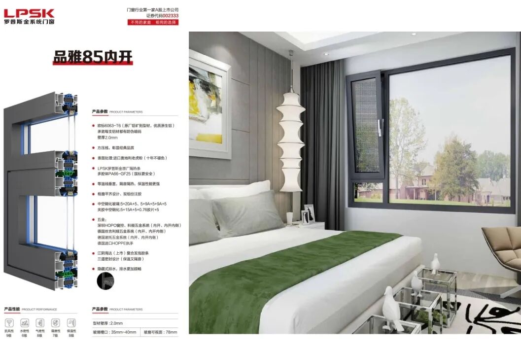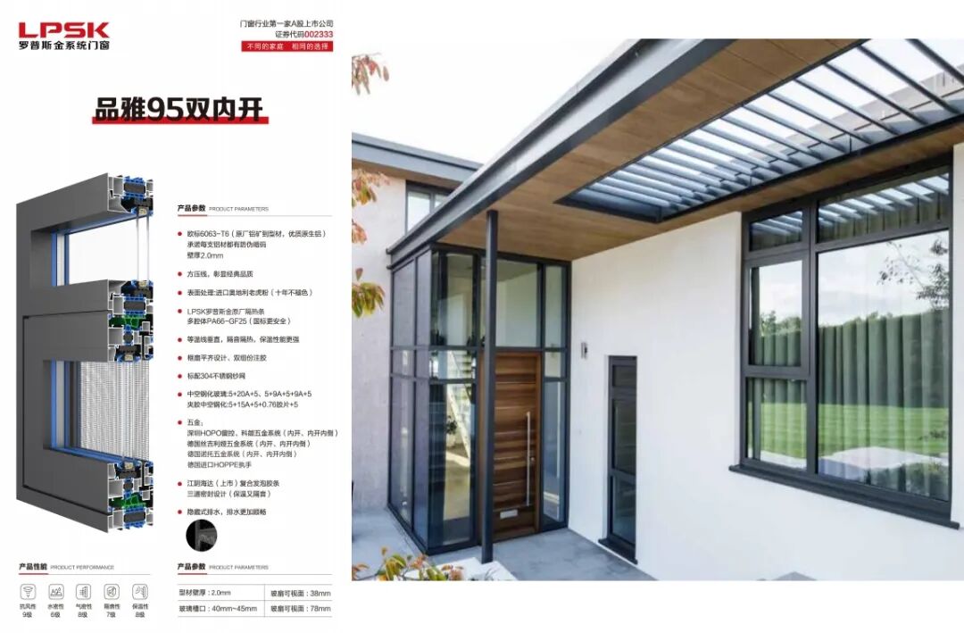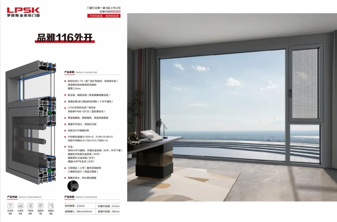 罗普斯金,自1993年于苏州创立,2010年作为国内第一家铝合金门窗上市品牌,荣耀登陆深交所,开启品牌新篇章。公司占地约47万平方米,耗资18亿打造现代化生产基地,现有30余台进口挤压机,包括意大利进口的DANLILIE挤压机、日本UBE挤压机等,产品年产能超15万吨。作为创新先锋,罗普斯金聚合人才优势,提升技术水平,拥有千余项国家专利,深度参与国家门窗标准制定,引领行业技术潮流。同时,积极响应绿色制造号召,构建绿色工厂,推行绿色设计、技术与生产管理,实现经济、生态与社会效益和谐共生,树立工业绿色发展典范。