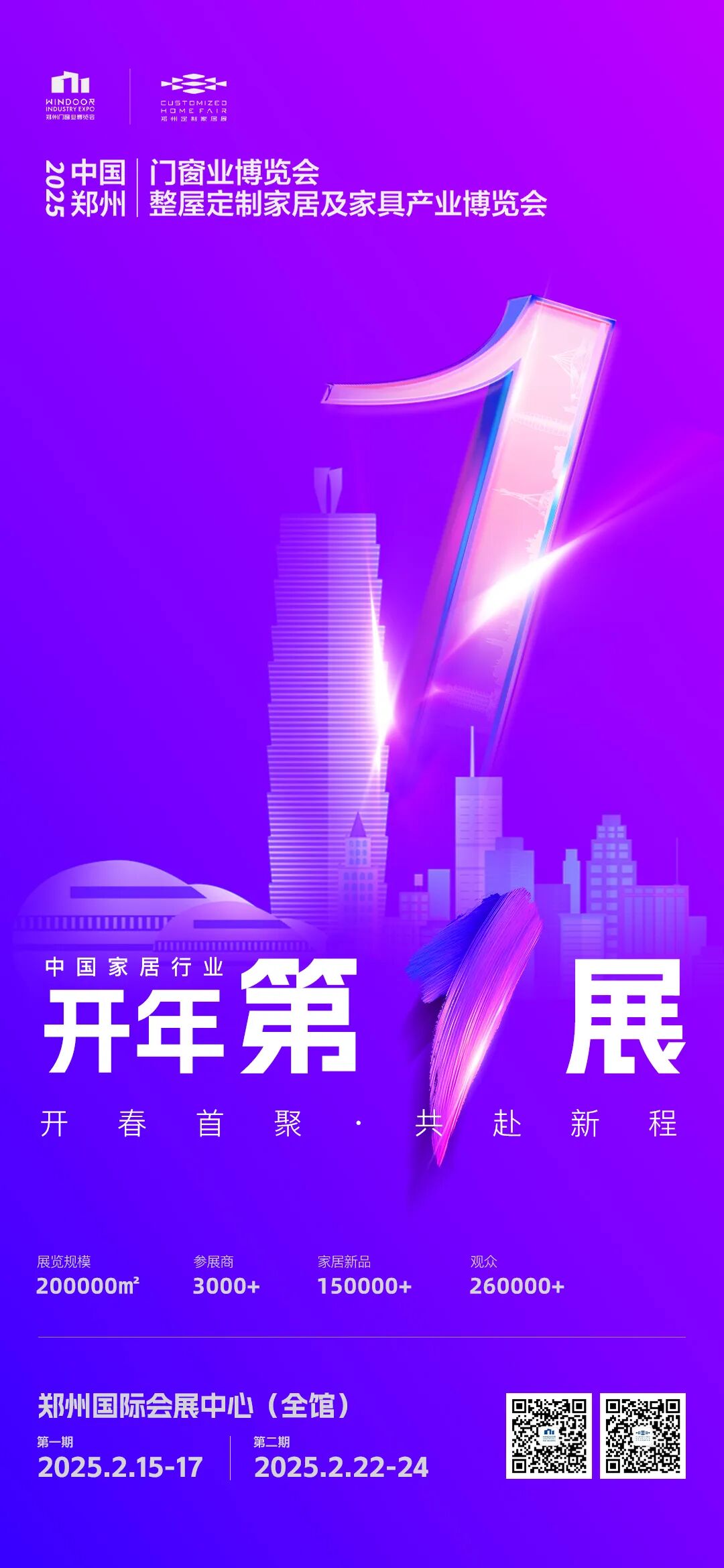 2025郑州门窗业暨整屋定制家居及家具产业博览会将于2025年2月15-17日、2月22-24日,分两期在郑州国际会展中心盛大举行!作为2025年度重磅盛会,本届展会以20万㎡展览面积,26个室内展馆+4个室外展馆,全面展示门窗家居产业链上下游新产品、新技术、新趋势,为家居行业搭建一个共寻商机、共谋发展、共创未来的优质平台。