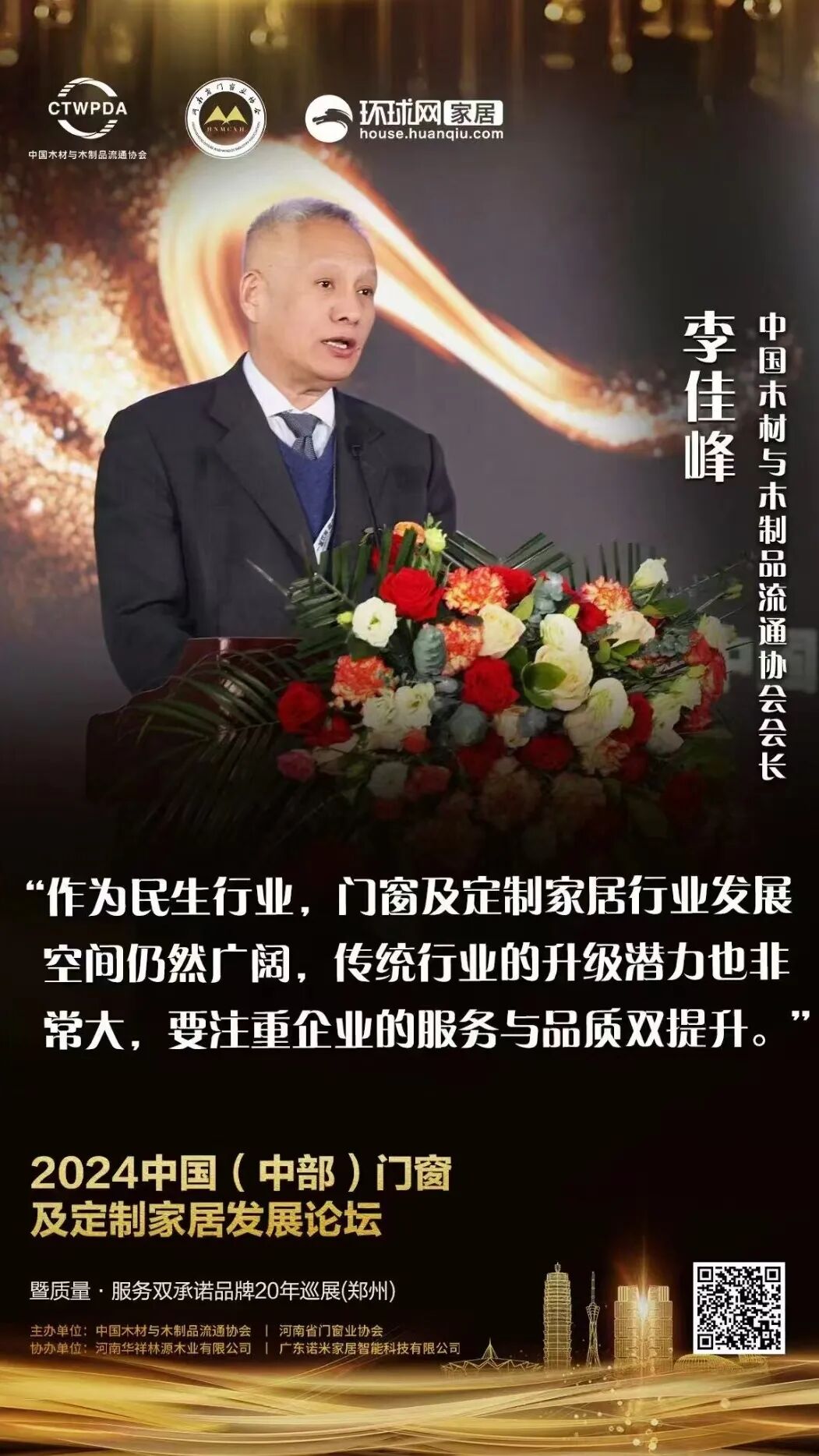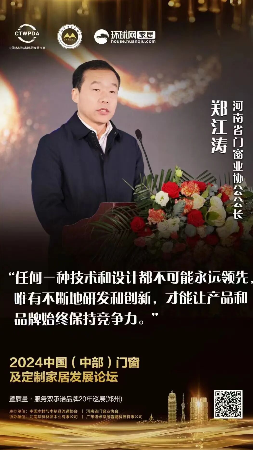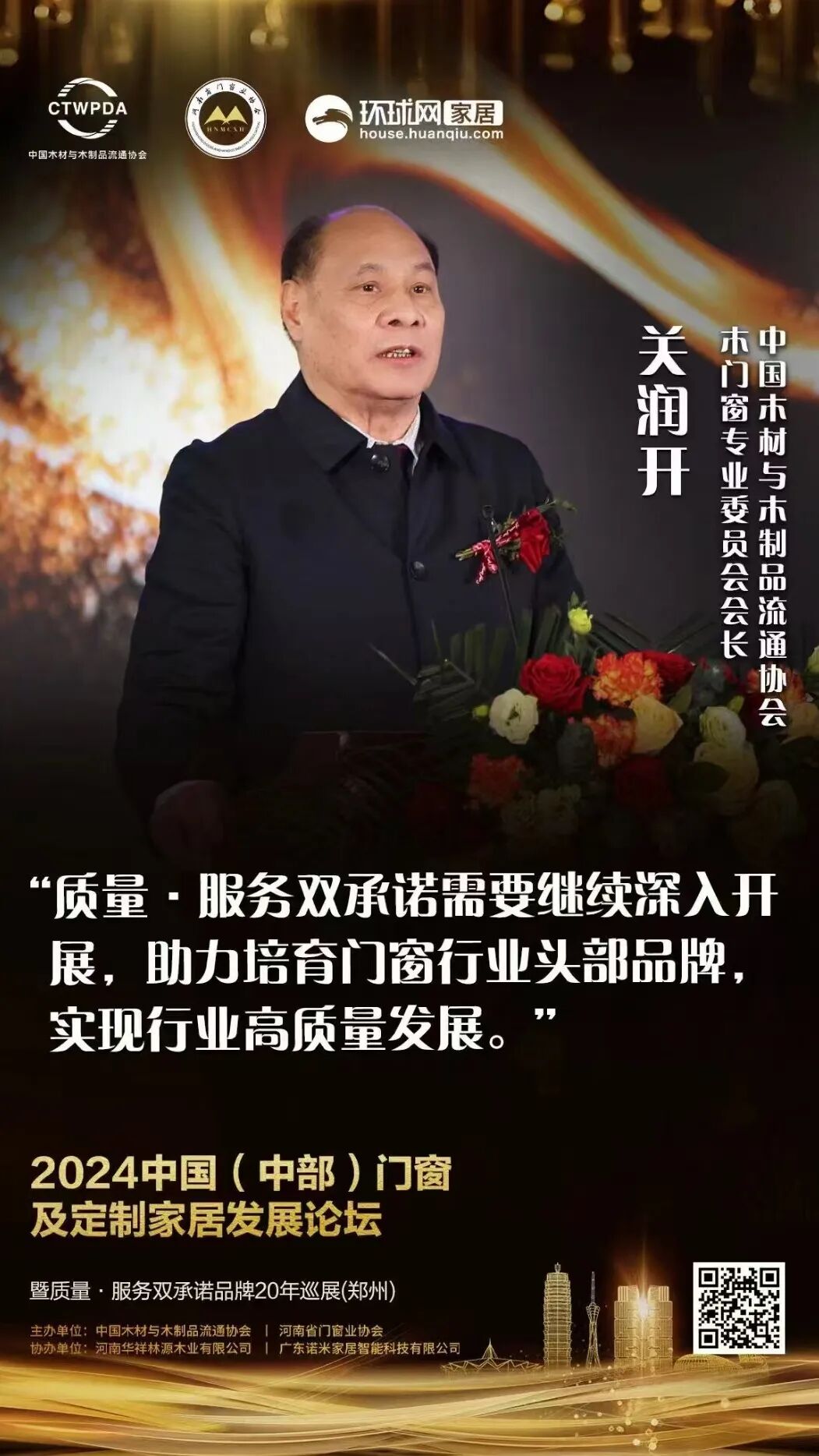 回首上届展会,2024年3月4-6日,2024郑州门窗业暨整屋定制家居及家具产业博览会在郑州国际会展中心成功举办。开幕当日,由中国木材与木制品流通协会与河南省门窗业协会共同主办的“2024中国(中部)门窗及定制家居发展论坛暨质量·服务双承诺品牌20年巡展(郑州)”于展会现场圆满举行。