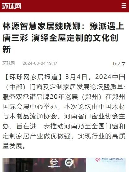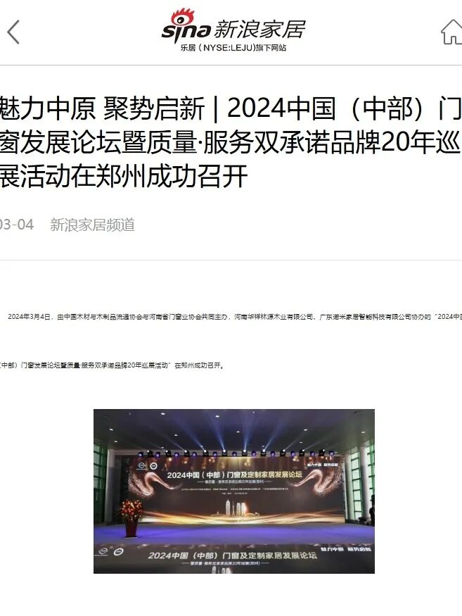 2024中国(中部)门窗及定制家居发展论坛暨质量·服务双承诺品牌20年巡展(郑州)活动也受到业界的广泛关注和满满好评。环球网、木门网、网易家居、中居快报、新浪家居等众多权威主流媒体纷纷到场,对该活动进行了深度报道。此次论坛活动不仅回顾了过去20年门窗行业的发展历程,更展望了行业发展的未来前景,为行业的持续繁荣注入了新的活力。