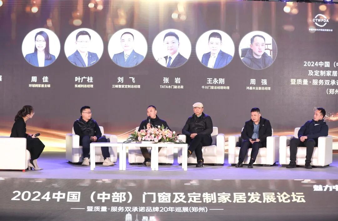 圆桌对话环节,由环球网家居主编周佳主持,TATA木门副总裁张岩、东威利总经理叶广柱、三峰整家定制总经理刘飞、千川门窗总经理助理王永刚、鸿基木业副总经理周强共同围绕门窗行业发展趋势、中部地区发展潜力、企业如何适应高质量发展新常态进行了友好而热烈的讨论,活动现场气氛欢快,干货满满。