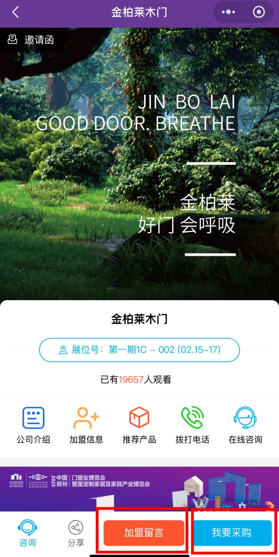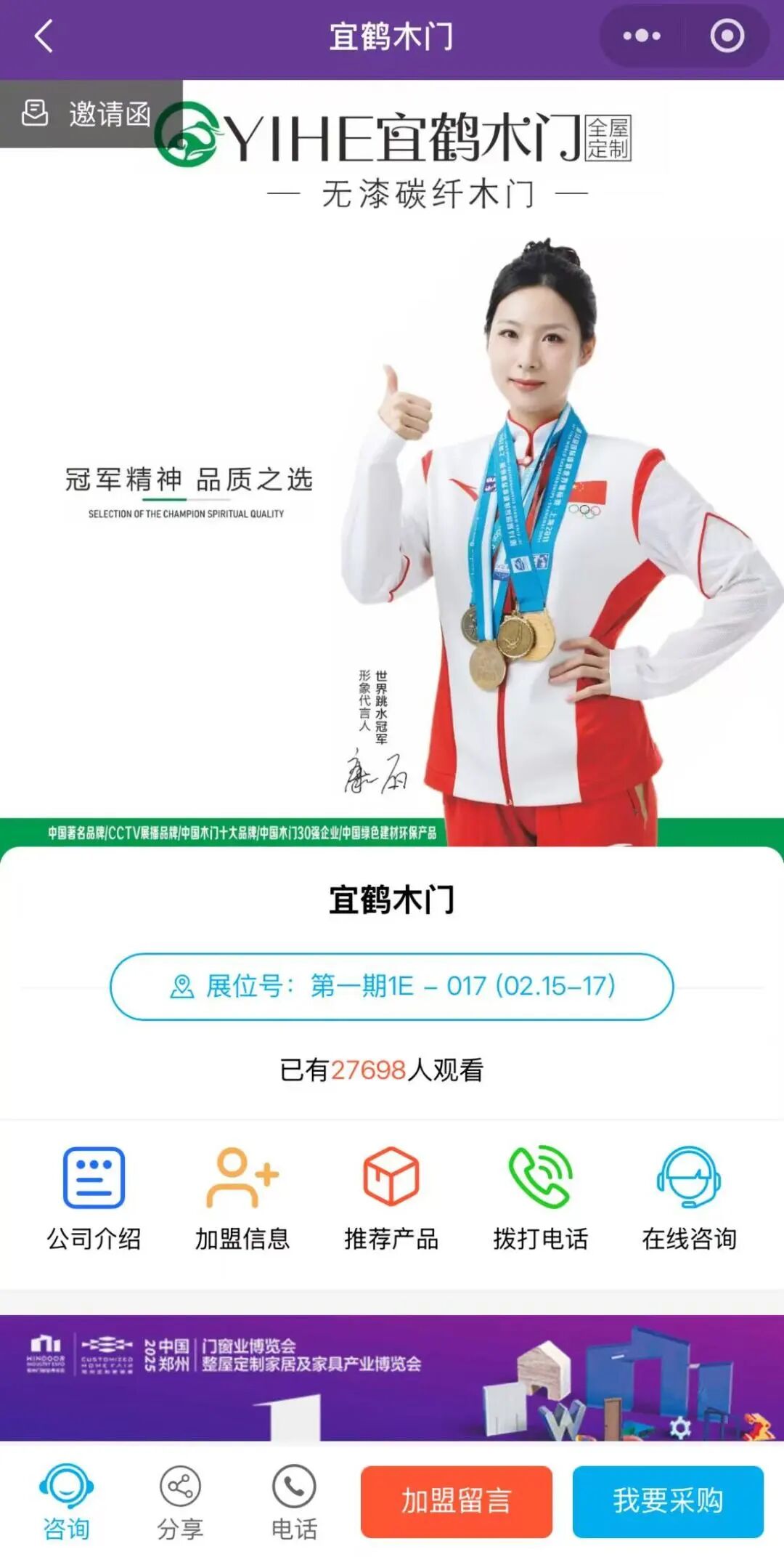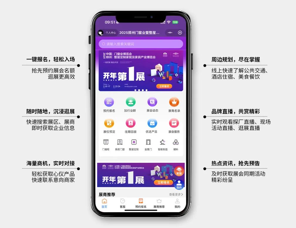 为提高参展效率与观展体验,展会组委会携手九正科技打造线上云展平台——“好招家居”小程序,以小程序和官方企业微信为载体,将线下展会搬到云端平台,快速体验观展报名、展会看点、商机对接、品牌导览、企业直播等多项服务板块!让展商参展效果更优,观众逛展更高效,打造365天永不落幕的线上盛会!