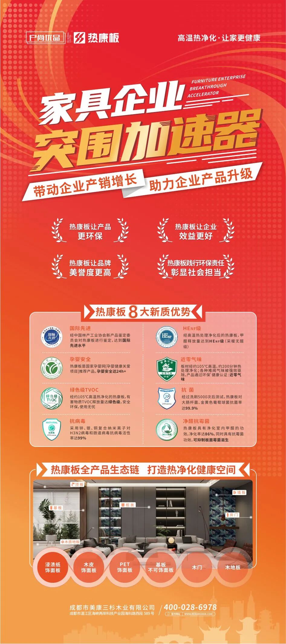 面对全球科技创新加速迭代的今天,热康板创始人张焕兵先生胸有丘壑,强化前瞻性地技术预研,以绿色化、高端化的产品,不断研制出热康板系列产品,满足中高端消费者对居住空间日益增长的安全健康的使用需求。