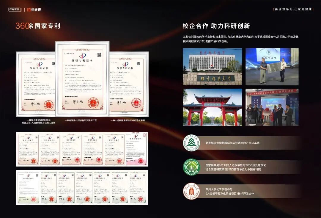 同时,三杉人始终把创新作为企业精神内核,奔着问题去创新,锚定人造板降醛、降VOC、除气味的问题攻坚克难。并在2021年承担国家林草局重点研发项目,携手北京林业大学、四川大学、绿色快线环保科技公司,创制出达到国际先进的人造板热净化处理智能装备。