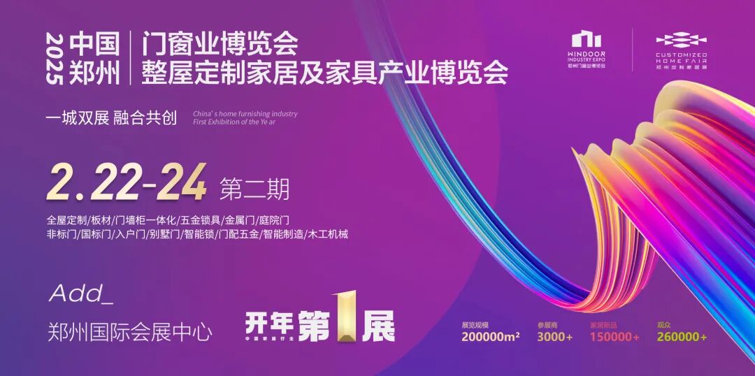 2025年2月22-24日,2025郑州门窗业暨整屋定制家居展第二期将于郑州国际会展中心隆重召开!这不仅是一场展现家居行业前沿产品的视觉盛宴,更是一场汇聚行业精英、激荡思想火花的智慧盛会。