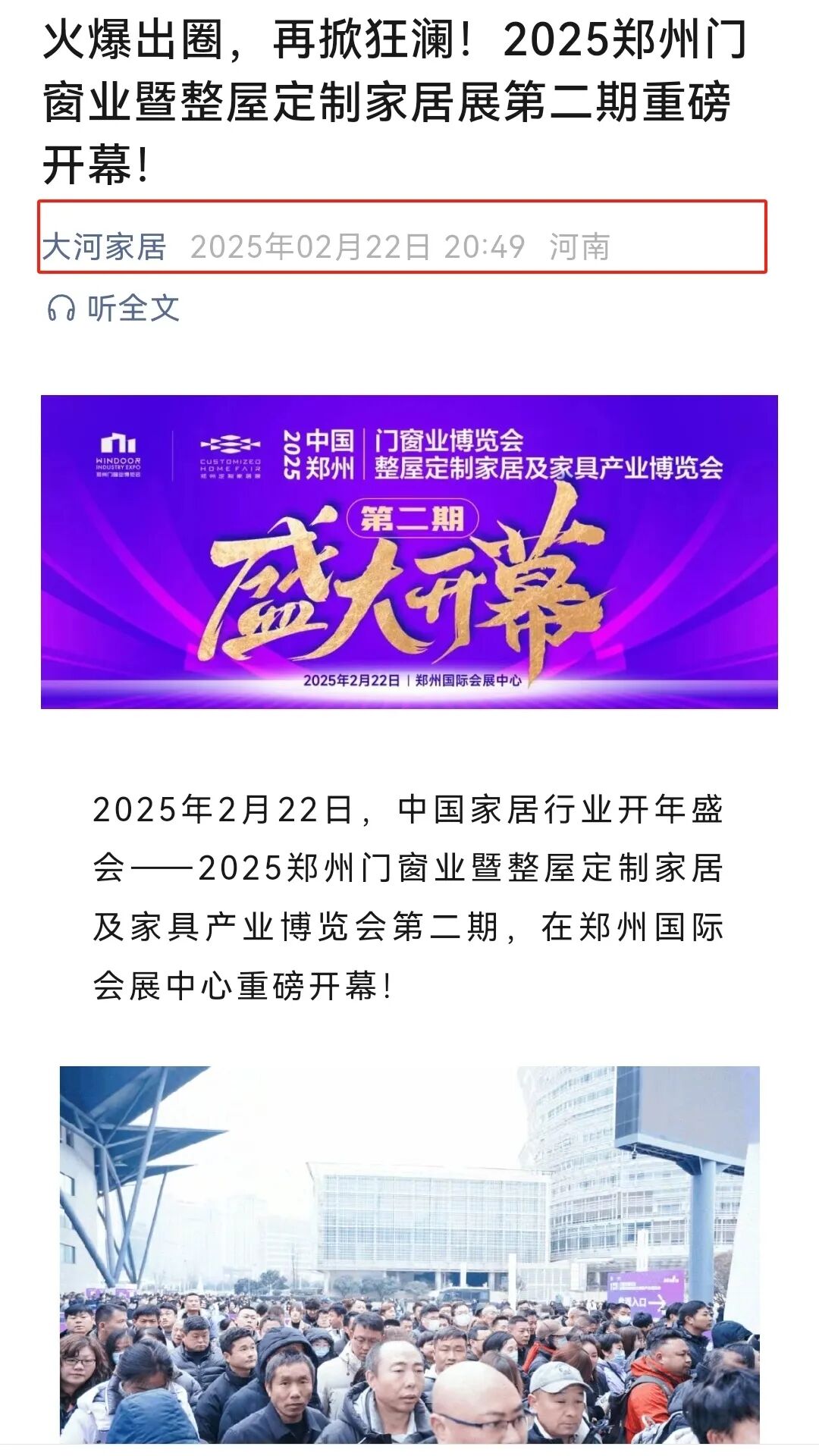 在各方的共同见证下,2025郑州门窗业暨整屋定制家居及家具产业博览会的两期展会圆满落幕!在此,我们向给予展会大力支持的各级领导和行业协会表示衷心感谢,向积极参与的展商朋友、充分信赖并到场的数十万观众,全力相助的合作伙伴以及媒体记者,致以最诚挚的谢意!同时,也向展会全体工作人员的辛勤付出表示深深的感谢!正是因为有大家的一路携手同行,才成功铸就了这场家居行业的开年盛会,为行业发展注入了新的活力。