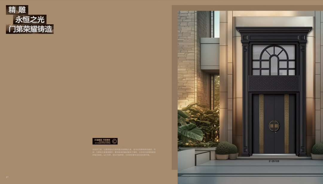 公司一直秉承“品牌、创新、完美”的经营管理理念,开发生产高端全铝系统门系列、四维T型钢制系统门系列、防爆装甲门系列、新中式仿古门系列等,所生产的门产品以优良品质、新型先进技术及美观造型领先于国内的同类产品。