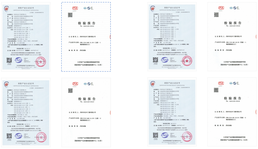 公司有国家防火建筑材料质量监督检验中心签发,依据GB12955《防火门》检验,按CCCF-CPRZ-18:2019《消防类产品认证实施规则,火灾防护产品建筑耐火构建产品》判定合格的防火门检验报告。